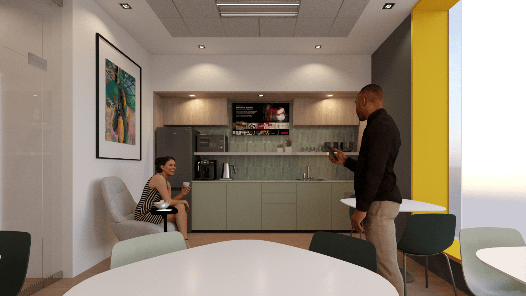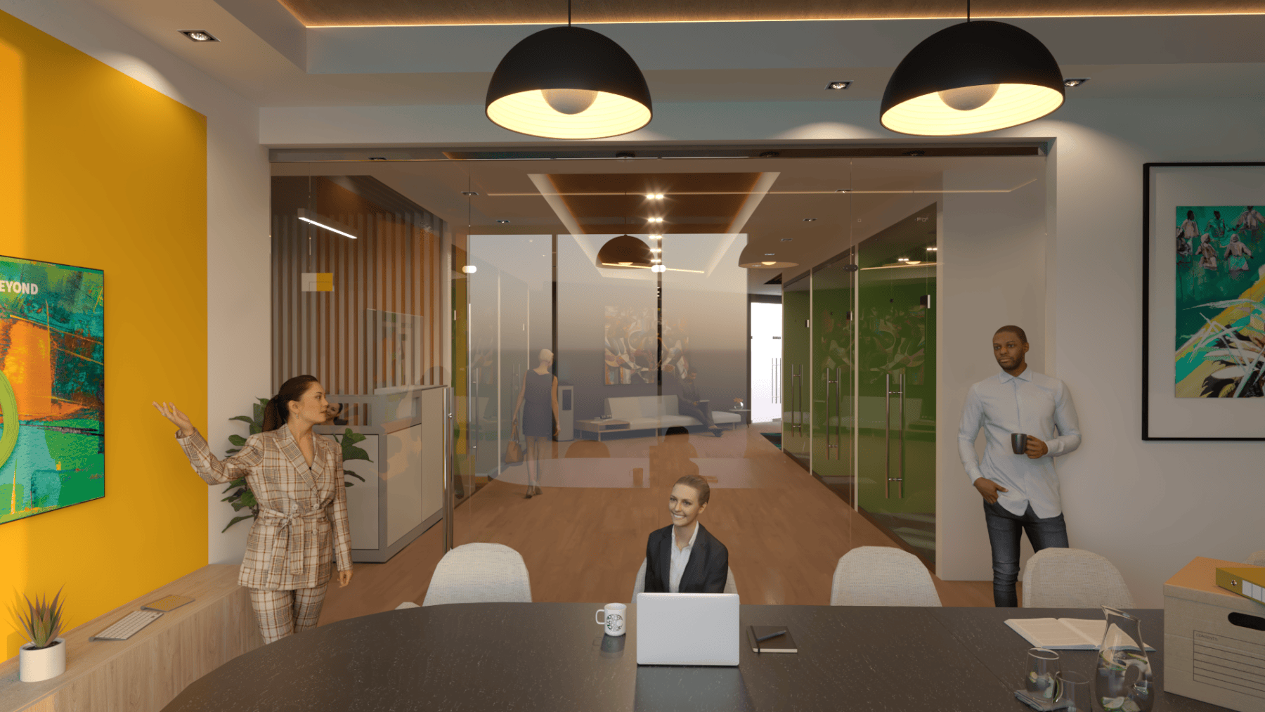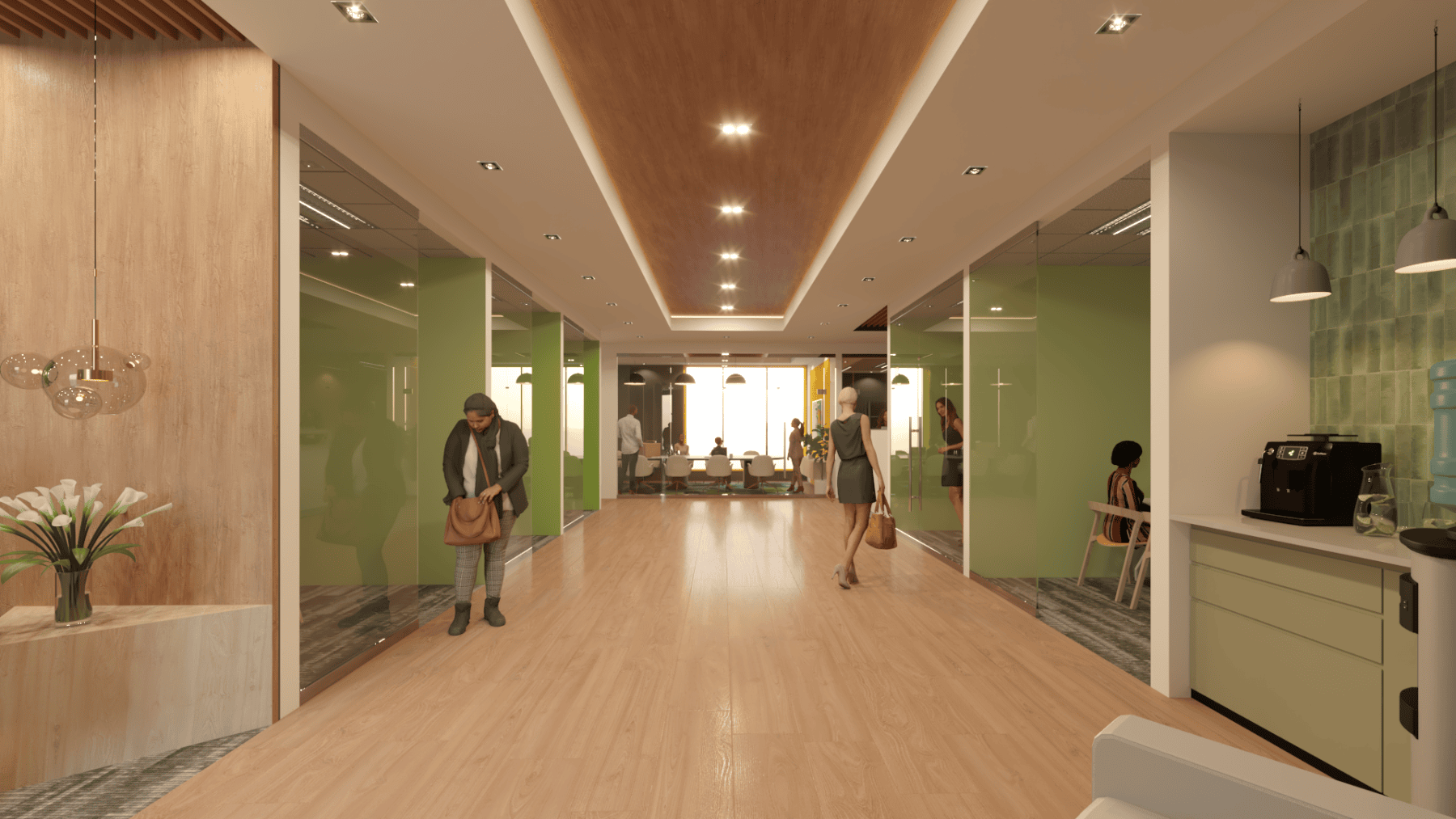 For this interior fit-out for First Citizens Investment Services, ACLA was tasked with outfitting a full service brokerage house that offers investment products in a sophisticated but warm and inviting environment. The design palette utilised the FCB brand combined with natural elements to introduce moments of biophilia by using faux moss, wood and stone textures. All combined with warm accent lighting throughout to encourage a humane yet refined space that promoted efficiency and comfort among staff and clients.