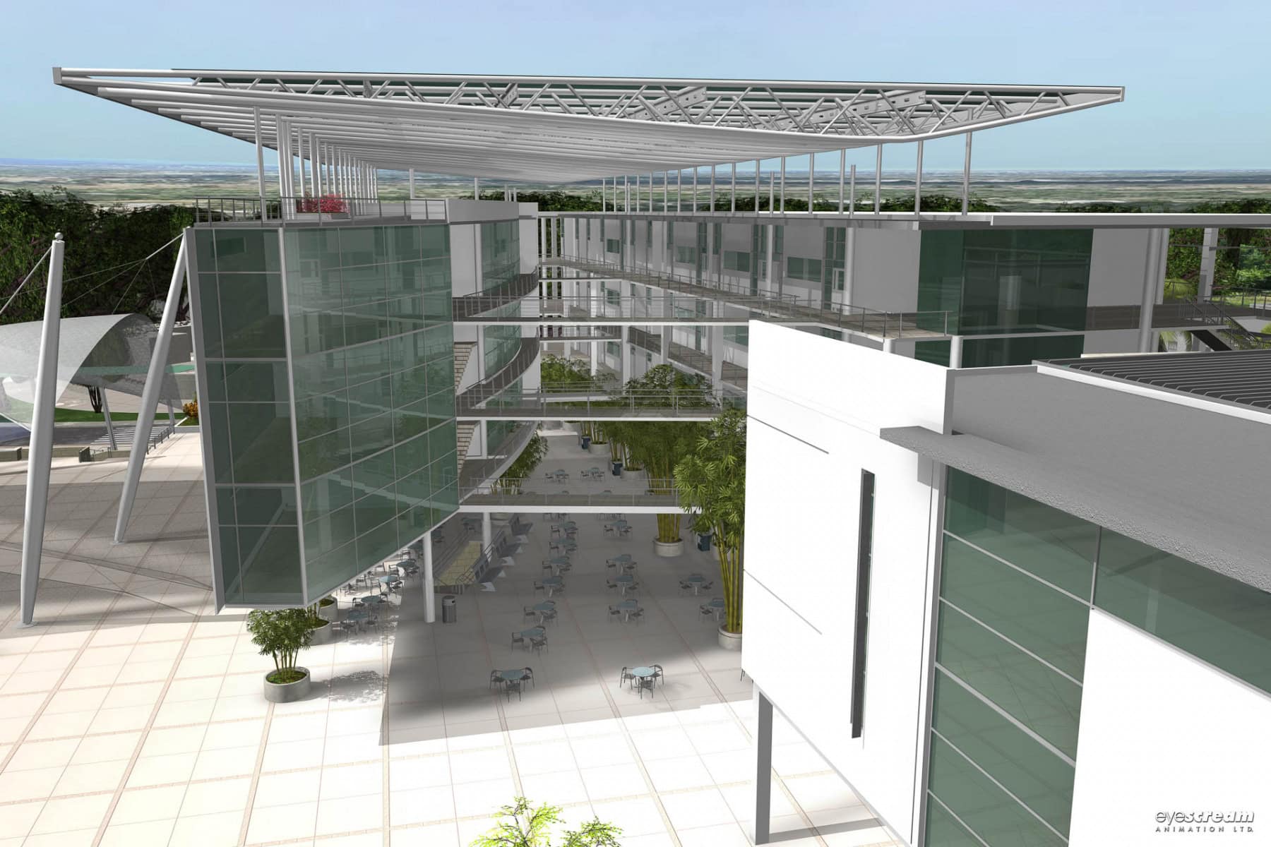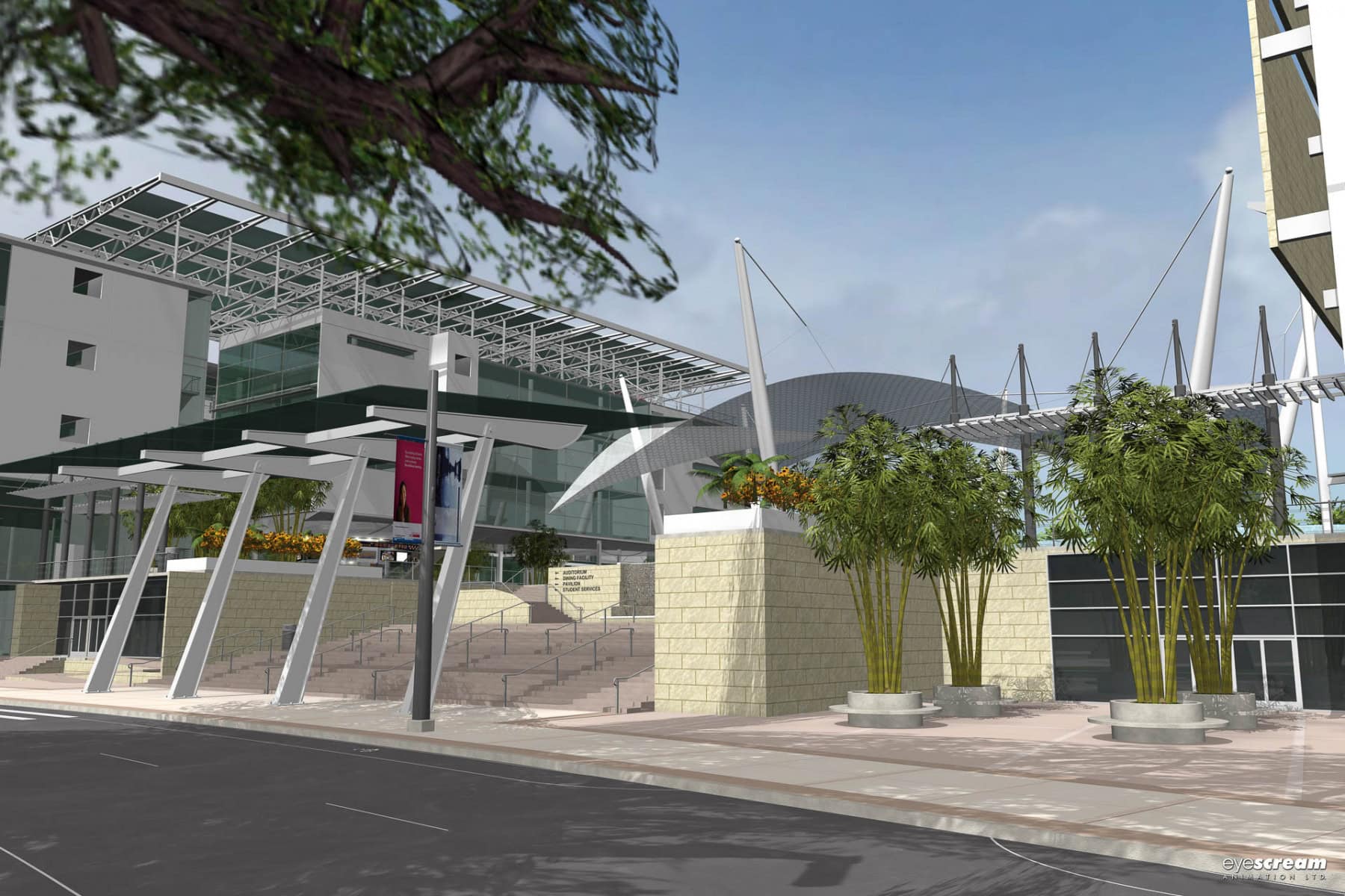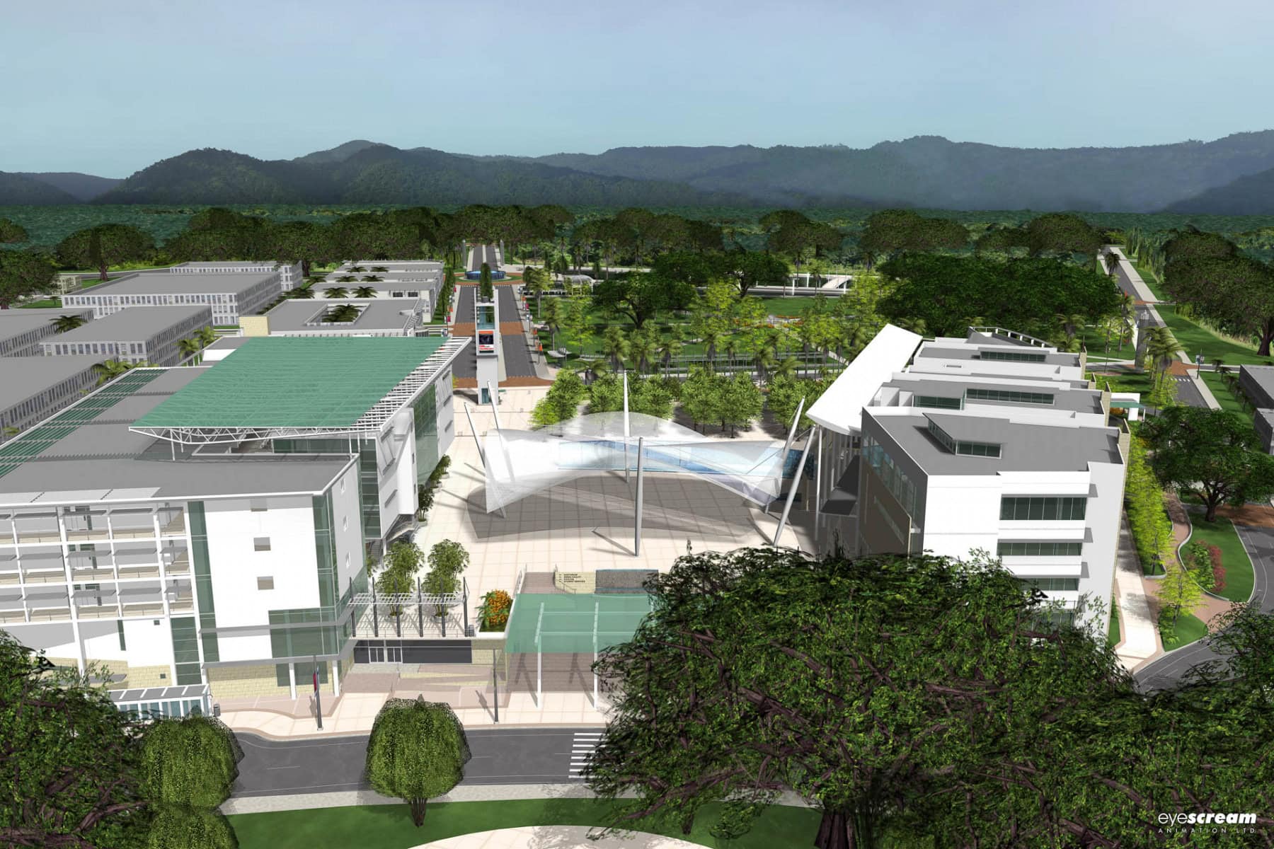 The university campus is the preeminent construct for the promotion and sustenance of the human condition. The main campus of the University of Trinidad and Tobago [UTT] moves away from the traditional structure of typical twentieth-century universities, to a leaner administrative structure with more dynamic, industry-responsive programmes. Its focus is to foster the economic development of Trinidad and Tobago, by providing the critical human resources and research capabilities to support business and industry activity. The UTT campus promotes the interaction of various disciplines, closely related to modern working practices and technological research.